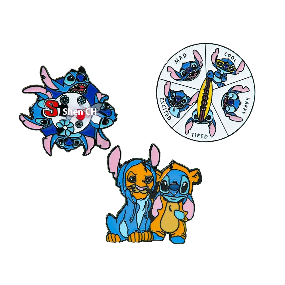 เข็มกลัดโลหะพิมพ์ลายการ์ตูนการ์ตูน Lilo เข็มกลัดโลหะหนา5มม. สลักลายด้วยแสงยูวีเทคนิคการวาดกระเป๋าเป้สะพายหลังประจำวัน
